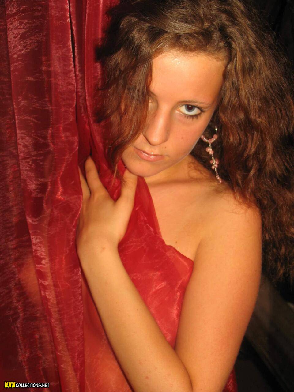 A collection of pictures with an amateur model with red hair.
